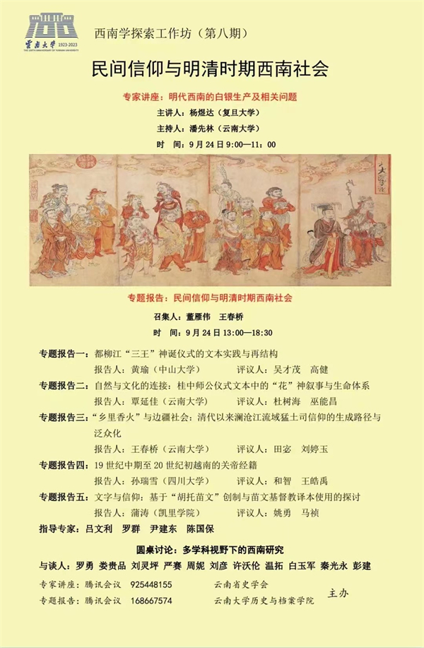 西南学探索工作坊第八期,将邀请复旦大学杨煜达教授做专家讲座:明代西南的白银生产及相关问题,并有中山大学黄瑜等人的专题报告。
