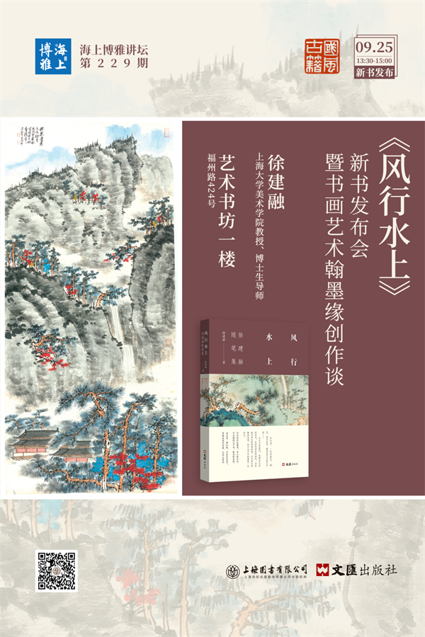 9月25日,著名书画家,上海大学美术学院教授、博士生导师徐建融,将在艺术书坊举办“《风行水上》新书发布会暨书画艺术翰墨缘创作谈”。活动中,徐建融先生将携新书《风行水上:徐建融随笔集》,与读者一起纵论书画、畅谈艺术、怀师忆友,并为购书读者签名、钤印、题上款。