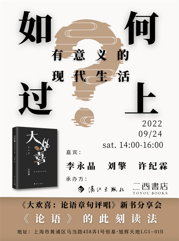 上海|如何过上有意义的现代生活——《大欢喜:论语章句评唱》新书分享会