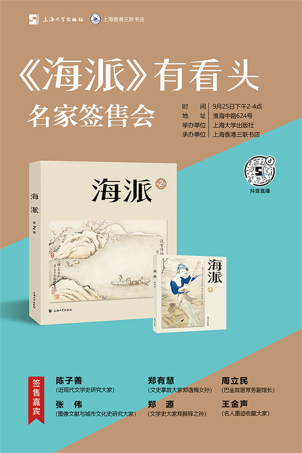 本周日下午,值《海派(第2辑)》新书出版之际,我们邀请6位名家(海派大家、名家后人、知名学者)齐聚市中心繁华地带淮海中路举办《海派》签售会,与读者一起畅聊海派。
