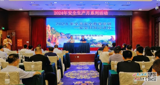 为建立健全风险防范化解机制,坚持从源头上防范化解重大安全风险,增强员工安全意识,牢固树立安全发展理念,6月18日,三清山金沙索道公司举行了以“人人讲安全,个个会应急——畅通生命通道”为主题的2024年全员安全教育培训——安全月知识讲座。