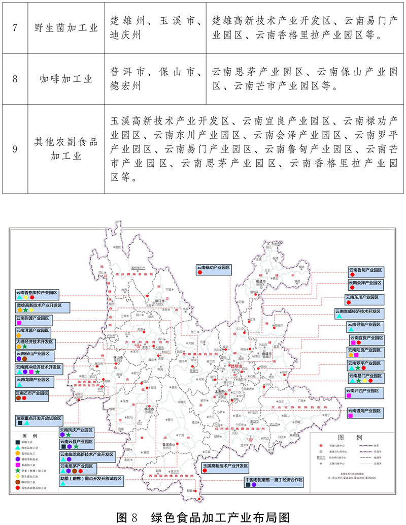 发挥各地比较优势,结合“一县一业”,统筹发展农产品初加工、精深加工、综合利用加工,促进产业差异化发展。聚焦精制茶、果蔬、坚果(核桃)、肉制品、制糖、乳制品、野生菌、咖啡等重点产业打造精深加工标志性产业链,大力发展熟肉制品、包装肉干、果干果脯、坚果等休闲食品,辅助发展液态奶、乳酸菌饮料等乳制品,积极研发生产功能性食品、养生保健食品等营养与健康食品,将产业延伸到高附加值领域。