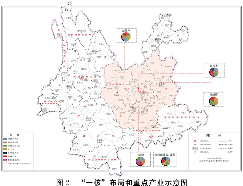以滇中城市群(昆明市、曲靖市、玉溪市、楚雄州以及红河州北部7县市)园区为载体,发挥人才、科技、市场、资本等要素集聚优势,以昆明市为龙头,以战略性新兴产业为导向,围绕把新材料产业打造为千亿级新兴支柱产业目标,大力发展有色金属新材料、化工新材料、稀贵金属新材料、光电子微电子及半导体新材料、新能源材料,统筹布局生物医药、先进装备制造、绿色食品加工、卷烟及配套、电子信息等产业,培育发展未来产业,推动产业向精深加工发展,强化科技创新,大力发展总部经济、数字经济,壮大生产性服务业,推动先进制造业和现代服务业深度融合,着力打造创业创新高地、战略性新兴产业高地,成为全省工业发展核心增长极,助推滇中崛起。