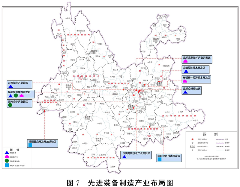 以滇中城市群园区核心,重点在昆明、曲靖、玉溪、楚雄、红河等州、市布局,着力培大育强、招大引强、延链强链、集群培育,大力发展先进装备制造产业,构建由零部件配套、基础制造到整机成套装备的产业发展梯队。