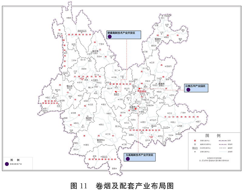 坚定实施“大品牌、大市场、大企业”发展战略,以云南五华产业园区、玉溪高新技术产业开发区、楚雄高新技术产业开发区等为核心布局发展,重点发展全产业链数字烟草、新型烟草,建设生产设备网络化、生产数据可视化、生产过程透明化、生产决策智能化的“四化”智能工厂、数字企业。积极发展香精香料、印刷包装等卷烟配套产业。强化设计研发,促进产业链延伸,推动香精香料和印刷包装等绿色发展,积极向日用、食用、药用领域延伸拓展。