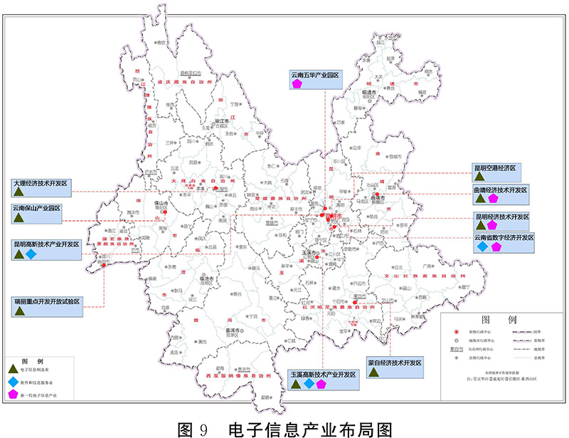 以昆明、曲靖、玉溪、楚雄、红河、文山、德宏、保山等州、市为主,大力发展集成电路、应用电子、物联网等新一代信息产业,加速电子信息核心关键零部件国产化进程,建成西南地区电子信息制造业发展高地。