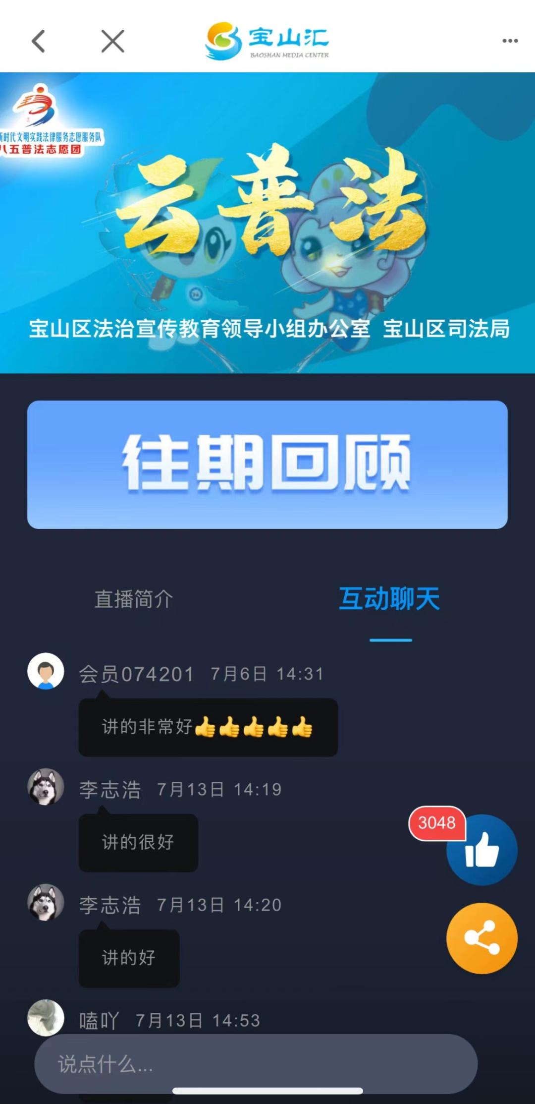 想从小培养孩子的法治素养,想让父母远离保健品诈骗,想和朋友一起学习法律知识,不需要前往专门的地点,不需要守住某个特定的时间,随手转发一个直播或回看链接,线上一起多人学习吧~