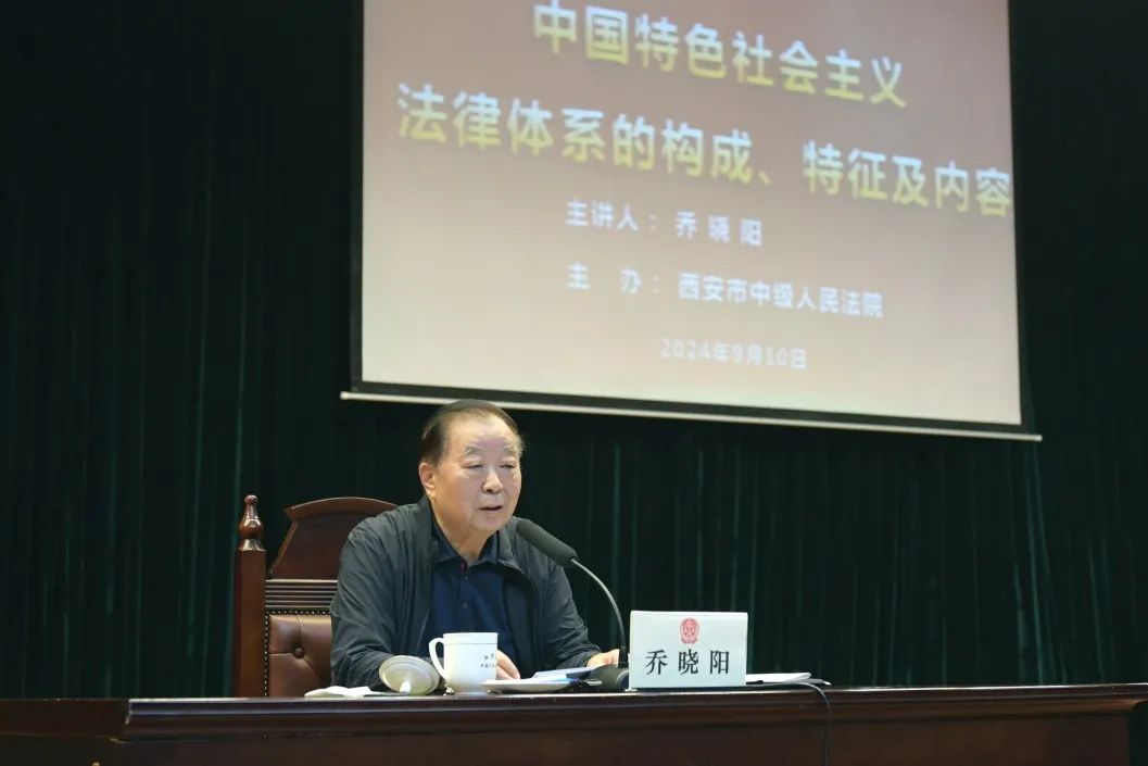 为全面学习贯彻党的二十届三中全会精神,深入学习贯彻习近平法治思想,进一步提高对中国特色社会主义法律体系科学完备、统一权威的认识,9月10日,西安中院举办全市法院中国特色社会主义法律体系专题讲座暨西安法院2024年第13期“法官讲堂”。第十二届全国人大法律委员会主任委员,全国人大常委会香港基本法委员会原主任、澳门基本法委员会原主任、全国人大常委会原副秘书长乔晓阳应邀授课。西安中院党组书记、院长赵雷主持讲座。