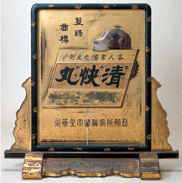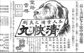 和仁丹卷胡子绅士的商标一样,清快丸的垂耳狗商标识别度非常高。然而,高桥盛大堂最初为这款药品做广告时使用的不是狗,而是一位乘热气球播撒传单的西服绅士。