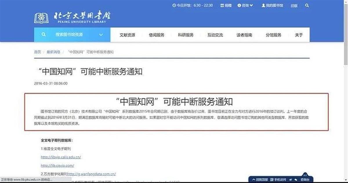 近日,一张中国科学院文献情报中心因为千万订阅费停用中国知网的通告引发广泛关注。4月17日,中科院一位负责该业务人员回应媒体称消息属实,中科院文献情报将于4月21日正式暂停使用知网,恢复时间未定。4月18日,“网传中科院停用知网”词条进入微博热搜前十。但随后,知网方面回应称此事不属实。至此,中科院续订知网的价格之争陷入罗生门。