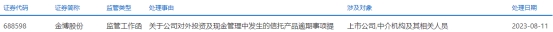 中国经济网北京8月14日讯 上交所网站于8月11日公布对金博股份(688598.SH)的监管工作函,处理事由为关于公司对外投资及现金管理中发生的信托产品逾期事项提出监管要求,涉及对象为上市公司,中介机构及其相关人员。